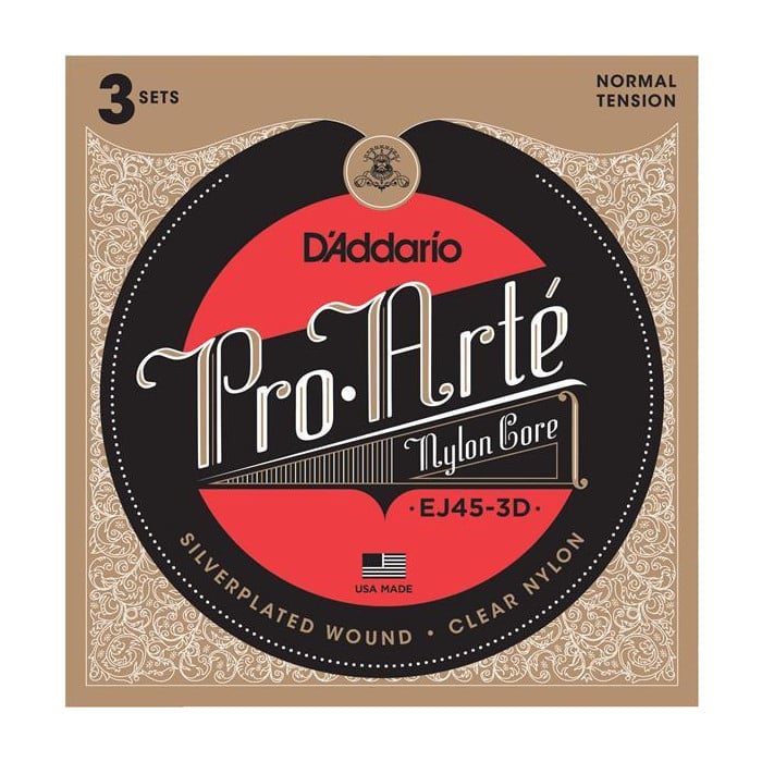 D'addario ej45 3d cordes guitare classique pro arte nylon tension normale 3 sets