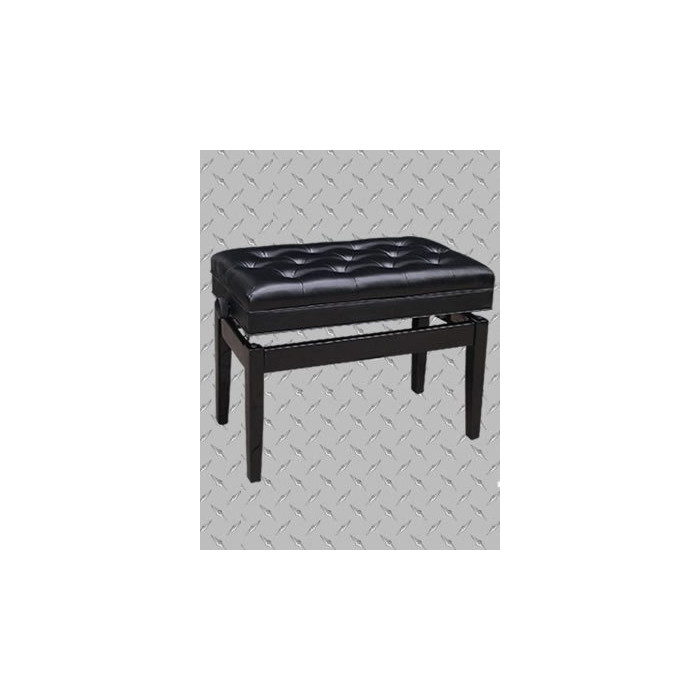 Piano bench, foam padded leatherette seat, wood leg/frame, music compartment.