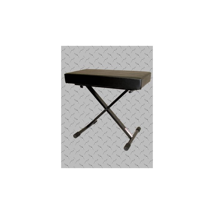 Deluxe piano/keyboard bench featuring large well padded seat, heavy duty folding legs with underseat multiple height adjustment.